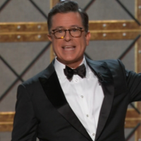 The former press secretary made a surprise appearance alongside Colbert during the 69th Annual Primetime Emmy Awards on Sunday.