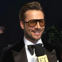 Glen Powell chats with ET's Denny Directo at the Vanity Fair Oscar Party.
