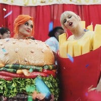Feast your eyes on all the colorful, fashion-forward ensembles from her new star-studded music video.