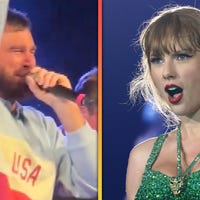 Travis Kelce gives a shout-out to Taylor Swift after winning a karaoke contest at a party for the 2024 American Century Championship.