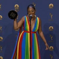Tiffany Haddish speaks backstage after winning for Guest Actress in a Comedy Series at the 2018 Emmy Awards.
