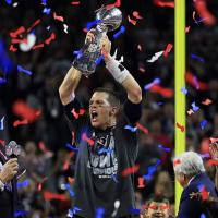 The Patriots' quarterback shared his fifth Super Bowl win with his wife and kids on the field.