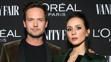 Patrick J. Adams and Troian Bellisario chat with ET on the red carpet at the 2024 Golden Globe Awards, airing on CBS.