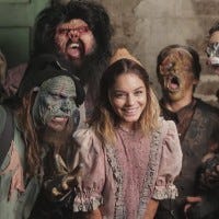 ET was with the Vanessa Hudgens as she dressed up as a scary witch to frighten unsuspecting guests at Knott's Scary Farm.