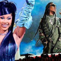 Cardi B joins GloRilla onstage for a performance during the 2022 American Music Awards, which aired Nov. 20 on ABC.