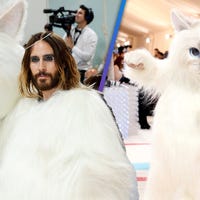 Doja Cat arrives dressed as late designer Karl Lagerfeld's cat at the 2023 Met Gala, themed Karl Lagerfeld: A Line of Beauty.