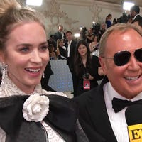 Emily Blunt chats with ET at the 2023 Met Gala, themed Karl Lagerfeld: A Line of Beauty, benefiting the MET's Costume Institute.