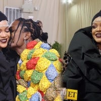 Rihanna and A$AP Rocky chat with ET as they arrive at the 2021 Met Gala.