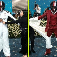 Damson Idris, who stars in 'F1' with Brad Pitt, arrived in a racing jumpsuit, which was ripped off to reveal a red Tommy Hilfiger suit.