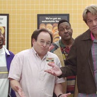 Ben Affleck, Jason Alexander, Alfonso Ribeiro, Jaleel White and more stars crack up in bloopers from their Super Bowl commercial.