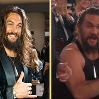 Momoa was caught hilariously rocking a tank top with his hair pulled back during the 77th Annual Golden Globe Awards.