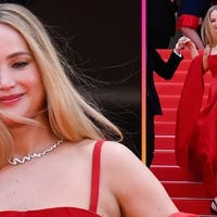Jennifer Lawrence walked the red carpet at the Cannes Film Festival on Sunday, rocking a red Christian Dior gown and black flip flops.