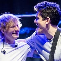 John Mayer and Ed Sheeran perform a duet of ‘Free Fallin’ at John’s Los Angeles concert Tuesday night.
