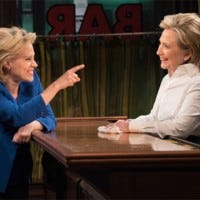 The presidential hopeful also dishes on her 'SNL' appearance with doppelganger Kate McKinnon.