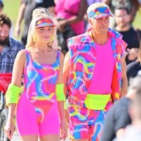 Margot Robbie and Ryan Gosling rock bright outfits on the set of the Warner Bros. upcoming 'Barbie' movie.