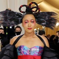 The TikTok star is radiant in red at fashion's biggest night.