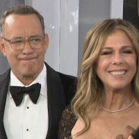 Hanks and wife Rita Wilson spoke with ET's Kevin Frazier on the Globes red carpet.