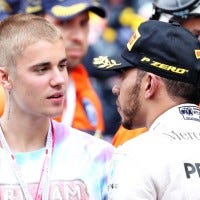 The 'Sorry' singer helped the race car driver celebrate his first victory of the season in style.