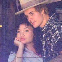 Justin Bieber sat in the lap of his model friend.