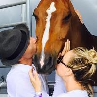The Big Bang Theory star combined her love for horses and a certain equestrian with a group kiss.