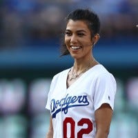 The 'Keeping Up With the Kardashians' star took the pitcher's mound with Kevin Hart in Los Angeles.