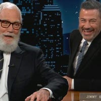 David Letterman visits 'Jimmy Kimmel Live!,' and says he’s grateful to be out of late night during the Trump era.