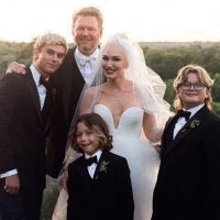 Gwen Stefani shared a photo of her three sons at her and Blake Shelton’s wedding over the weekend in Oklahoma.