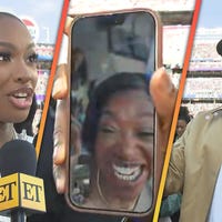 Coco Jones speaks with ET's Kevin Frazier on the field at Super Bowl LX after her pre-game performance of 'Lift Every Voice and Sing.'