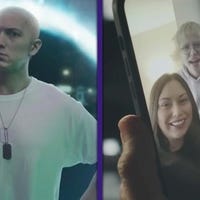 Eminem's 'Houdini' video surprises fans with a rare appearance from his kids and celebs cameos from Snoop Dogg, 50 Cent and more.