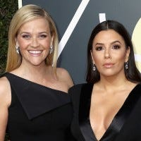 The actress walked the red carpet with Eva Longoria, who told ET that she and Witherspoon have 'four full-time jobs, and three of them are Time's Up.'