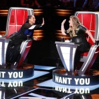 ET caught up with the newest 'The Voice' judge and her co-star Blake Shelton and she revealed she never received part of her grand prize package after winning the first season in 2002.