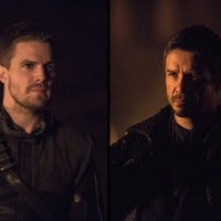 Stephen Amell, Emily Bett Rickards and more talk to ETonline about the Starling City hero's potentially big move.