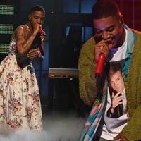 Kid Cudi paid tribute to Kurt Cobain and Chris Farley in his debut as a musical guest on ‘Saturday Night Live.’