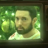 The reclusive rapper made a cameo in the Christmas-themed parody of his hit ‘Stan’ on ‘Saturday Night Live.’