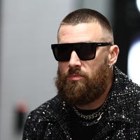 The Kansas City Chiefs tight end made a sparkly fashion statement prior to hitting the field for Super Bowl LVIII.