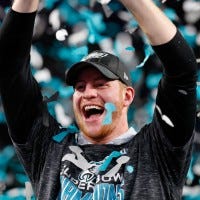 ET's Kevin Frazier caught up with the actor after the Philadelphia Eagle's big win in Minneapolis, Minnesota, on Sunday night.