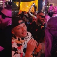 Patrick Mahomes' wife had the musician put on a Chiefs jacket at the team's Super Bowl after-party.