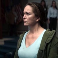 The actress talks to ET about her villainous role as a conservative political figure in the post-apocalyptic series.