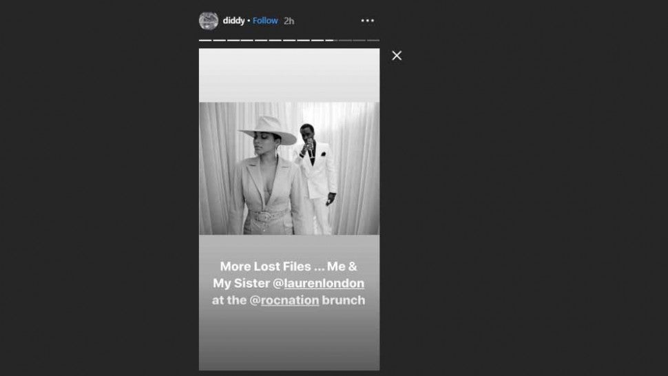 Diddy reportedly initially posted the pic with the caption: "#lostfiles ... @laurenlondon❤️." He later reposted the photo with the message: "More Lost Files ... Me & My Sister @laurenlondon at the @rocnation brunch."