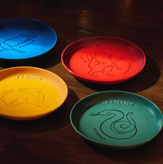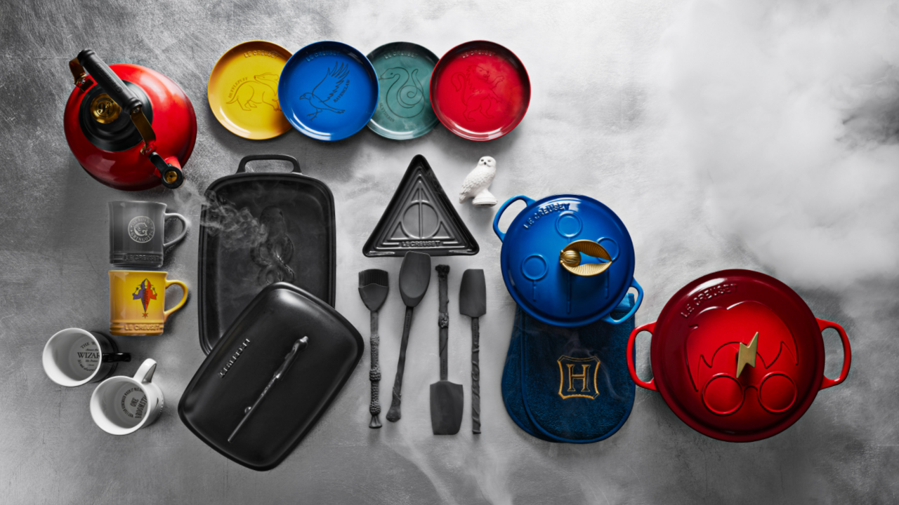 From signature round Dutch Ovens topped with a Quidditch-inspired knob and spell-casting spatulas to a Deathly Hallows spoon rest and even dessert plates honoring the four Hogwarts Houses, muggles and kitchen aficionados alike can enjoy a magical twist on all of their holiday cooking thanks to the Le Creuset x Harry Potter cookware collection.