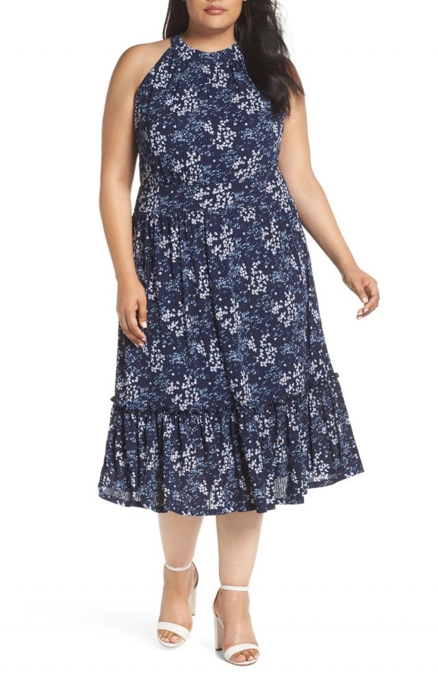 MICHAEL Michael Kors Plus Floral Tiered Midi Halter Dress $150