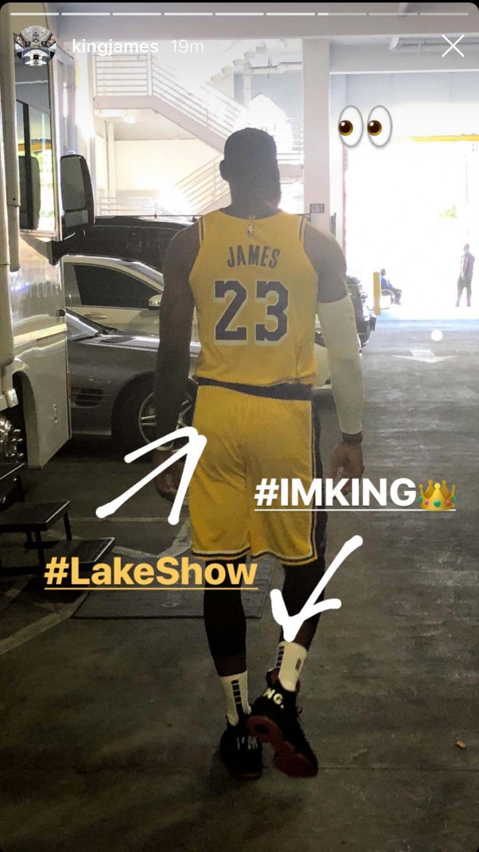LeBron James took to his Instagram story on Wednesday to share a snapshot of himself decked out head to toe in his Lakers jersey for the first time.