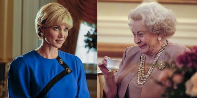 A few hours later, the network released the first official photos of Soper and Sullivun as Princess Diana and Queen Elizabeth II, respectively.