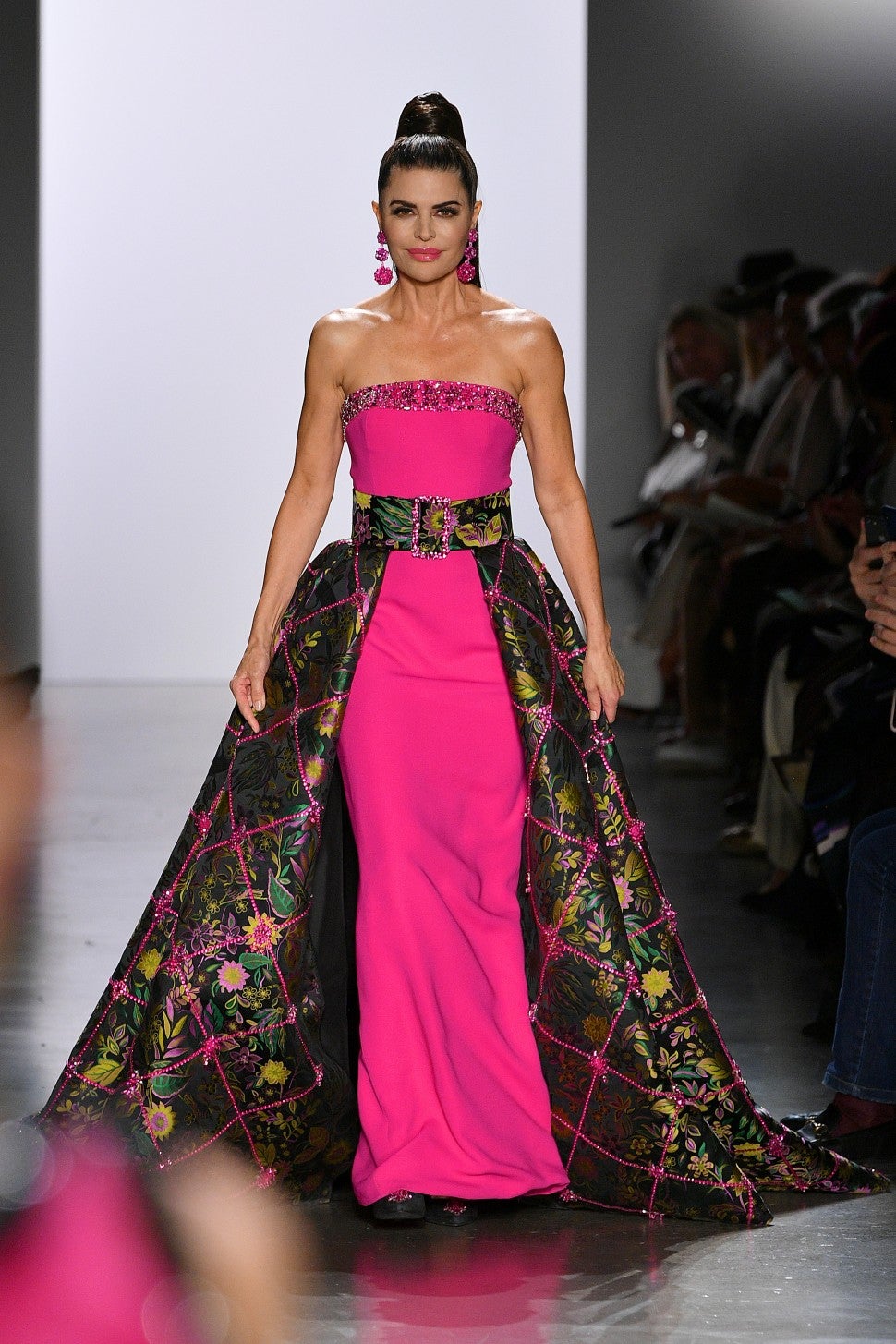 See the 'RHOBH' star stun on the runway at the Dennis Basso fashion show with her model daughters.