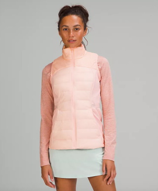 The Down for It All Vest is specifically designed for cold-weather runs. The zip-up shell has zoned insulation that holds warmth and stretchy fleece that lets you move effortlessly.