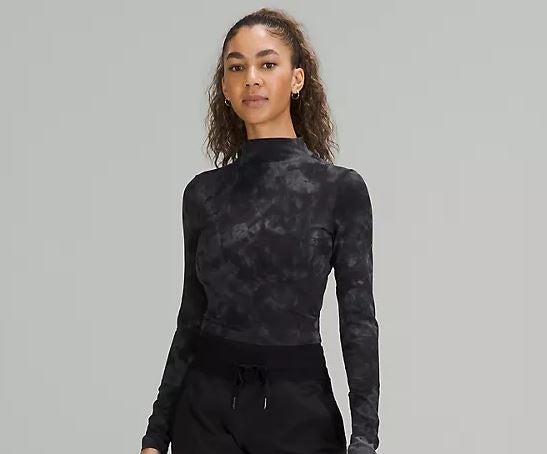 Need a mock turtle neck shirt to start your morning workout routine (even when it's chilly outside)? Then, you might want to consider this tie-dye printed long sleeve shirt.