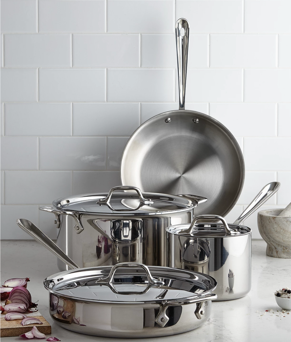 All-Clad D3 Stainless Everyday, 7 Piece Pots and Pans Cookware Set