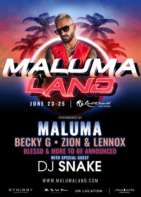 The three-day, festival-style weekend -- titled "Maluma Land" -- will take place at Resorts World Las Vegas, and feature one-of-a-kind performances and events from Latin superstars including Becky G, Blessd, DJ Snake, Zion & Lennox, and Maluma himself.