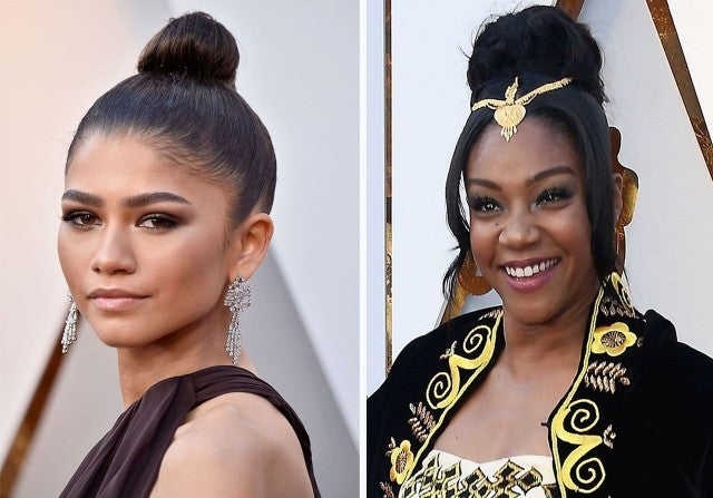 When in doubt, keep it simple. Sandra Bullock, Nicole Kidman and Gina Rodriguez were just a few of the stars who opted for a center part on Sunday. To get the look on your own, use a thin comb to make the part -- use your facial features as a guide, beginning the part at the front of your hairline (between your brows) and ending at the nape of your neck. Then, section off your hair and use a flat iron to straighten your tresses, going over each section two or three times to be sure you don't miss any pieces. Slightly spritz with hairspray to keep the style intact all night long!