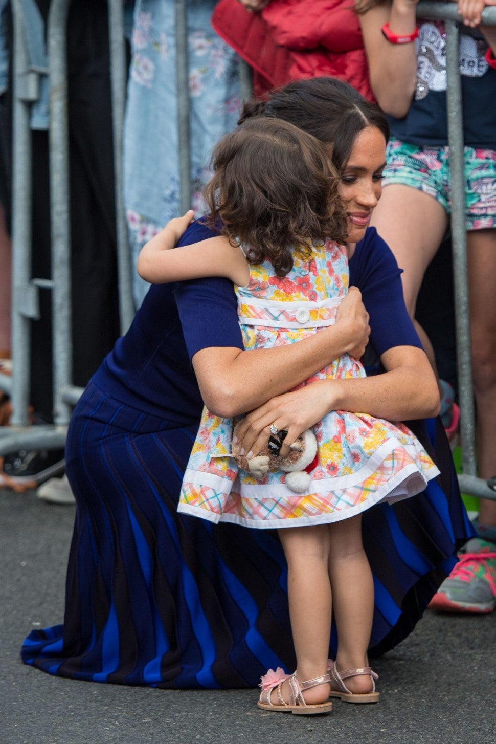 Regardless, Meghan handled the mishap like a pro. Instead of paying any attention to the fashion faux pas, the brunette beauty smiled while shaking hands and hugging royal admirers on her walkabout of Rotorua.